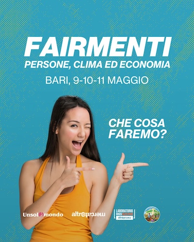 Il Festival FairMenti, si articola in tre giorni per chi crede che il cambiamento passi dalle idee, dalle relazioni e dalle scelte quotidiane. Insieme parliamo e ci confrontiamo sui temi della giustizia climatica, economica e sociale, con incontri, laboratori, workshop e spettacoli aperti a tutte e tutti. Ti aspettiamo a Bari il 9, 10 e 11 maggio....