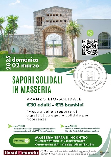 🍽 Ore 13:00 – Pranzo solidale con prodotti bio, equo-solidali e della tradizione pugliese....